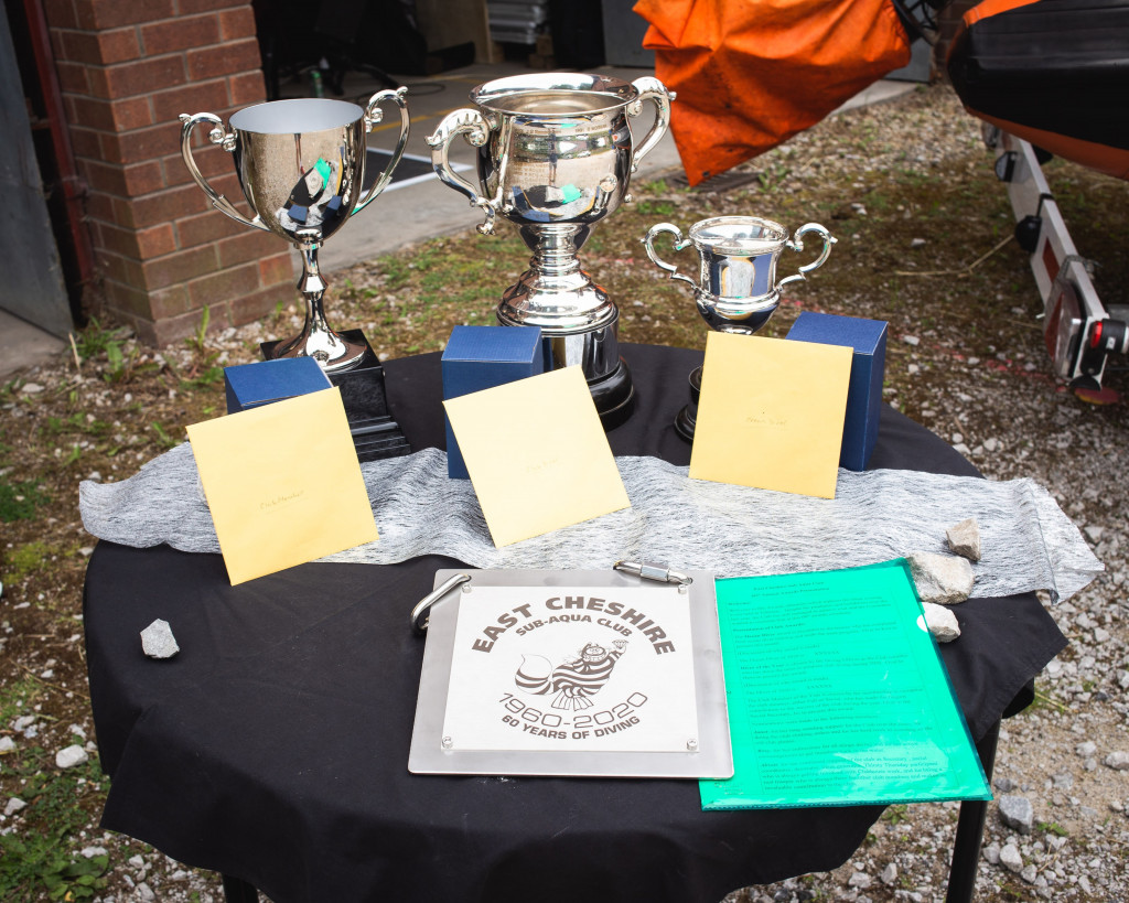 Following a difficult year due to Covid-19 restrictions, the annual awards were presented at the Clubhouse on Sunday 27th June. The event was held in the boathouse and on the carpark in line with guidance. Members were very happy to meet up and socialise and they were entertained by music played by Dave Robinson plus a playlist of dive related songs compiled by David Henderson.
