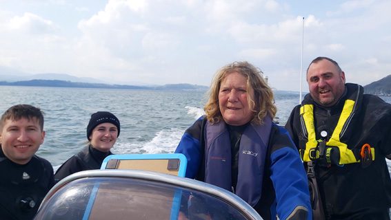 Our plans for the weekend had a focus on boat handling opportunities, RIB diving skills, and exploration, so there were no time pressures at all on Saturday. This made for a relaxed, fun day of diving. We spent the morning introducing Top Cat to Vladimir and Meg and the process for prepping her for launch and diving, then Sue expertly navigated us out of the Menai and northwards towards Point Lynas. She successfully completed this in spite of the added challenge I gave her after inadvertently placing a magnetic whiteboard behind the compass. My apologies, Sue!
