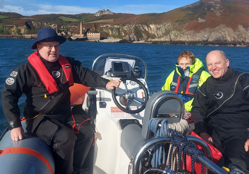 Trwyn Eilian / Point Lynas (Chris Holden’s Underwater Guide to North Wales Vol. 2, page 125, dive site 6.19) is a rocky headland that juts northward from the north-east corner of Anglesey. A lighthouse stands on the promontory. Shallow ledges and reefs run out from the northernmost tip, with clusters of large boulders as the water deepens. It is a known viewing spot for the porpoise colony that pass by daily, which our divers were lucky enough to encounter after their second dive!