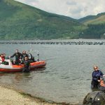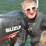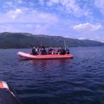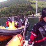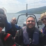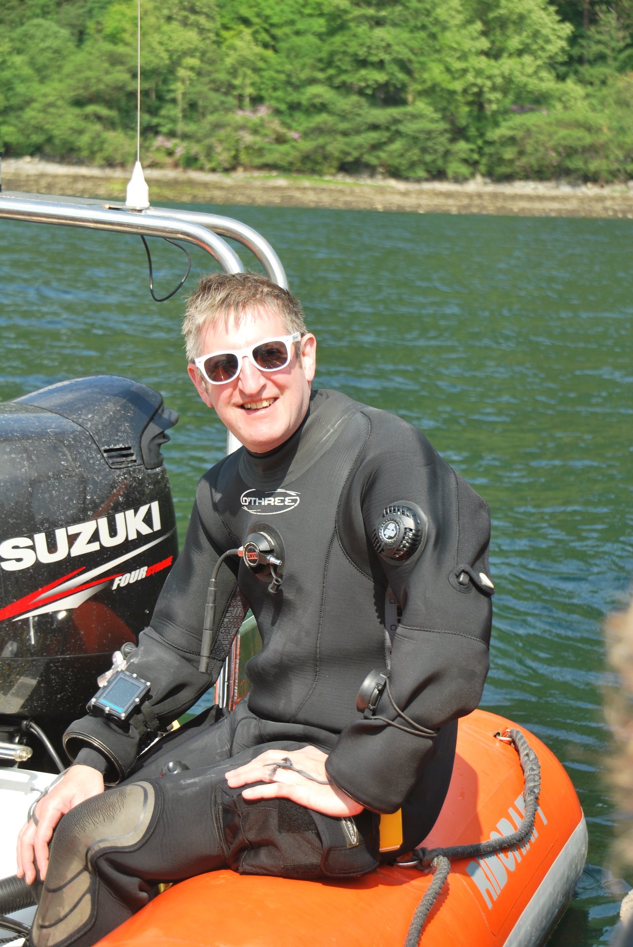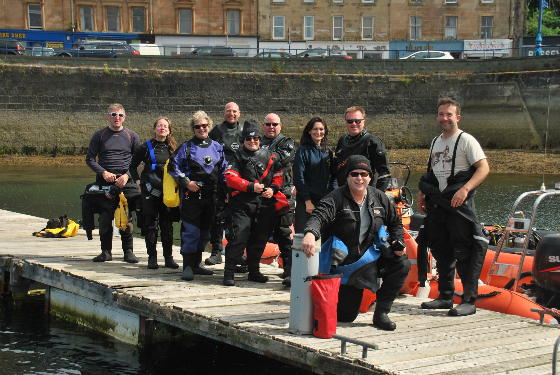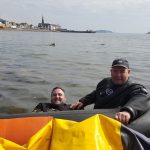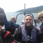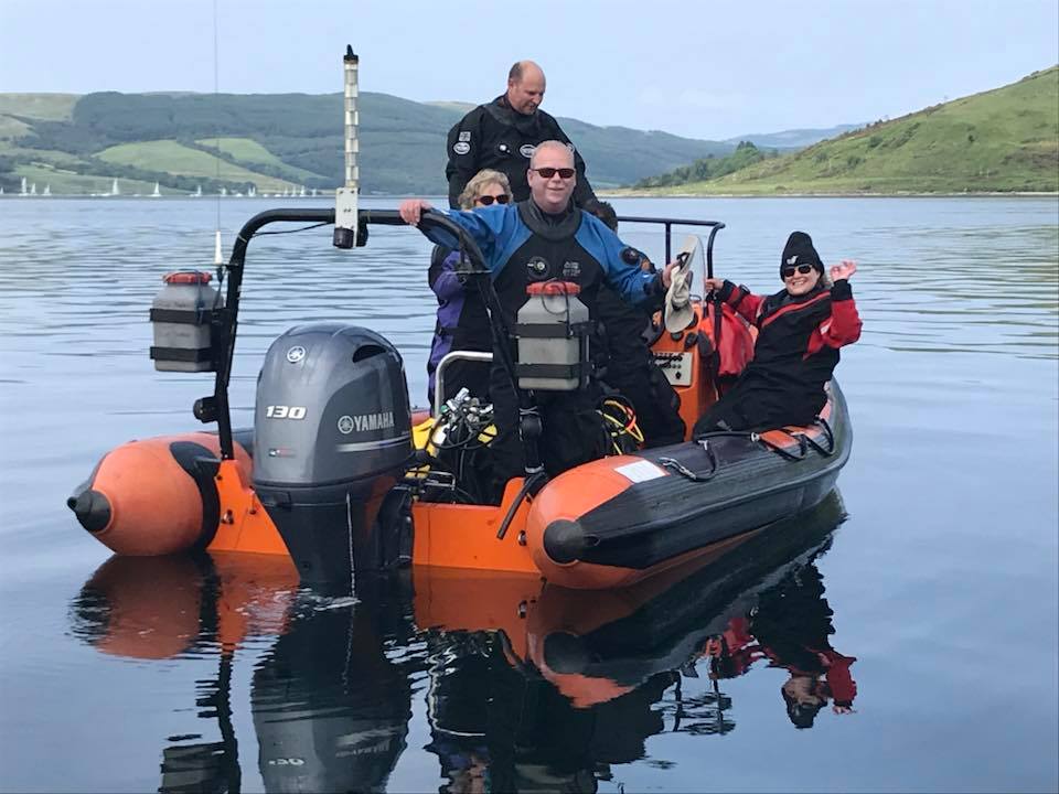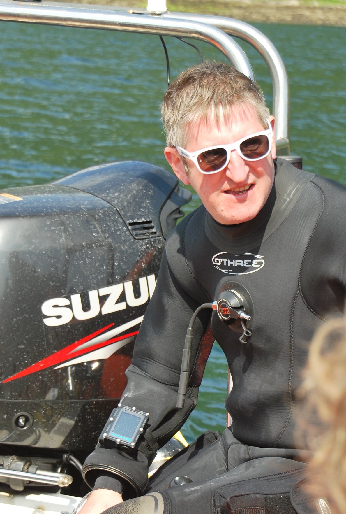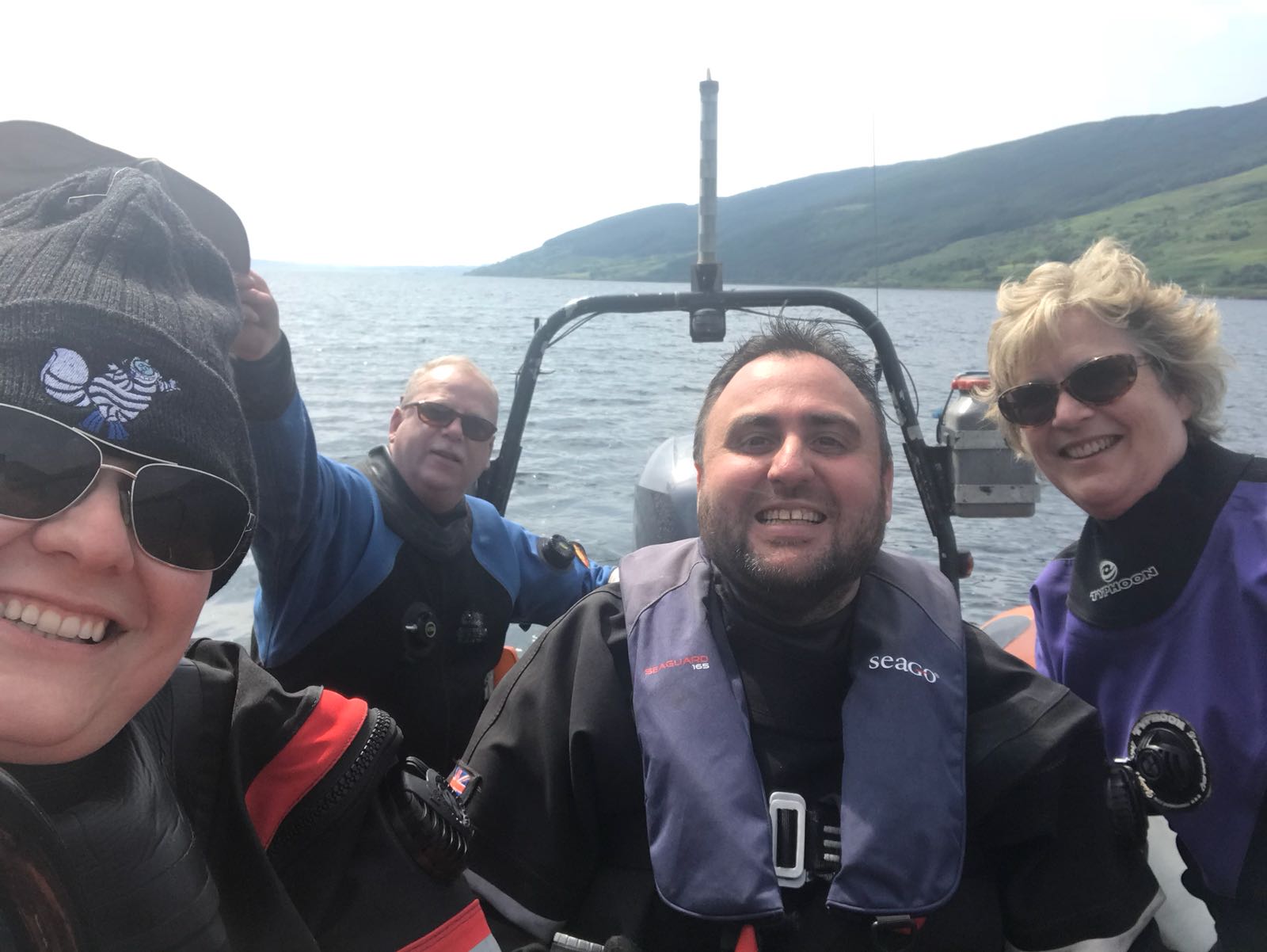 Some porpoises came along to wish us luck! Now came an exercise in buddy building. After team Top Cat dropped the shot it was up to Kev and Steve Welton to descend into the depths of the Loch to locate and then set a distance line up from the shot too the side charge. We attempted to shot near to – but not on top of the Side-Charge as we have never been assured that it was not actually “Live”!
