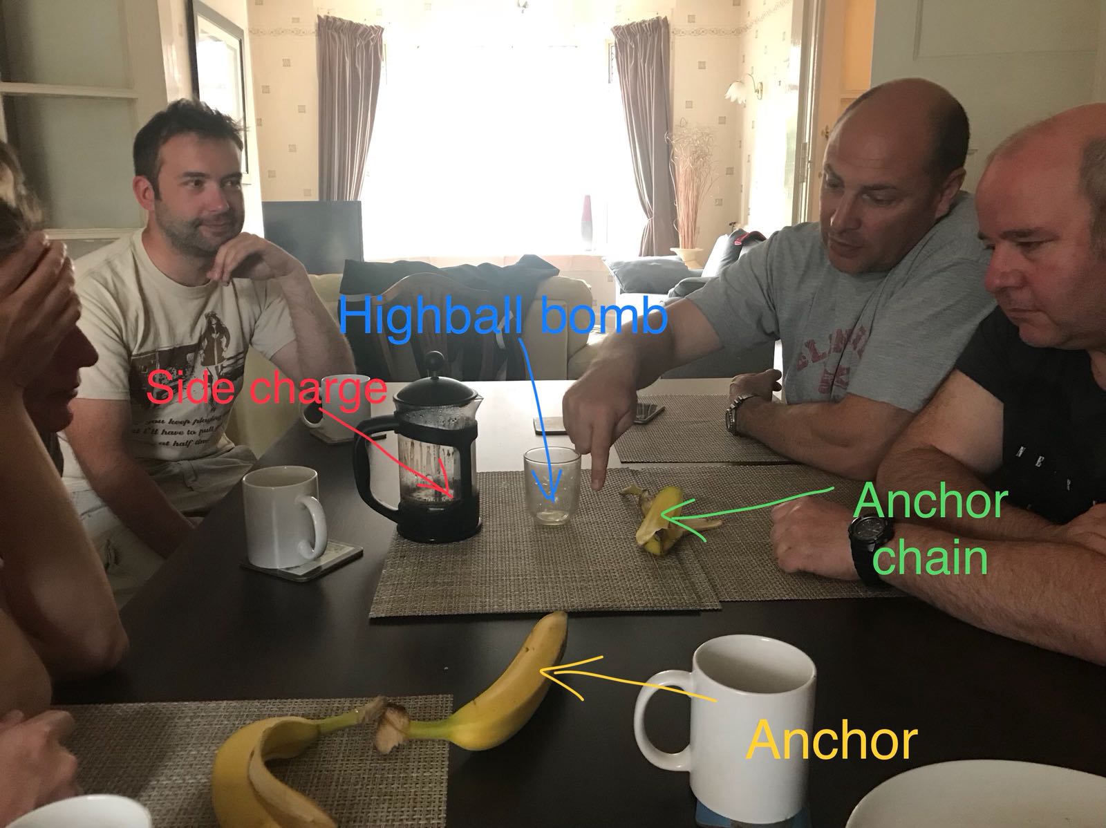 One the evening of Day 1 we all went out for a very nice meal in Largs, and after a good sleep (brought on by the exertions and excitement of Day 1) the team undertook a detailed dive briefing over breakfast using all the available items to set out the dive site.