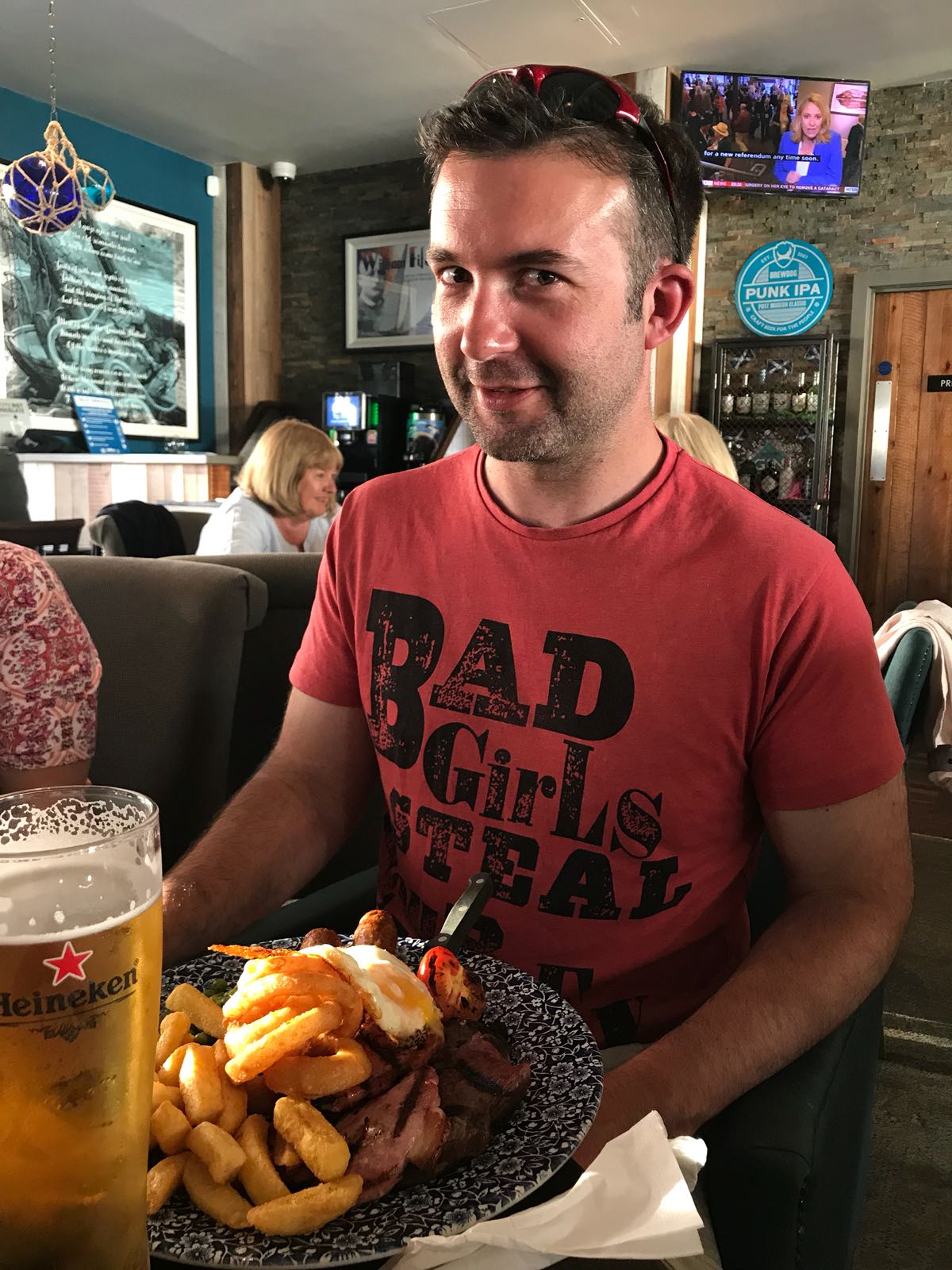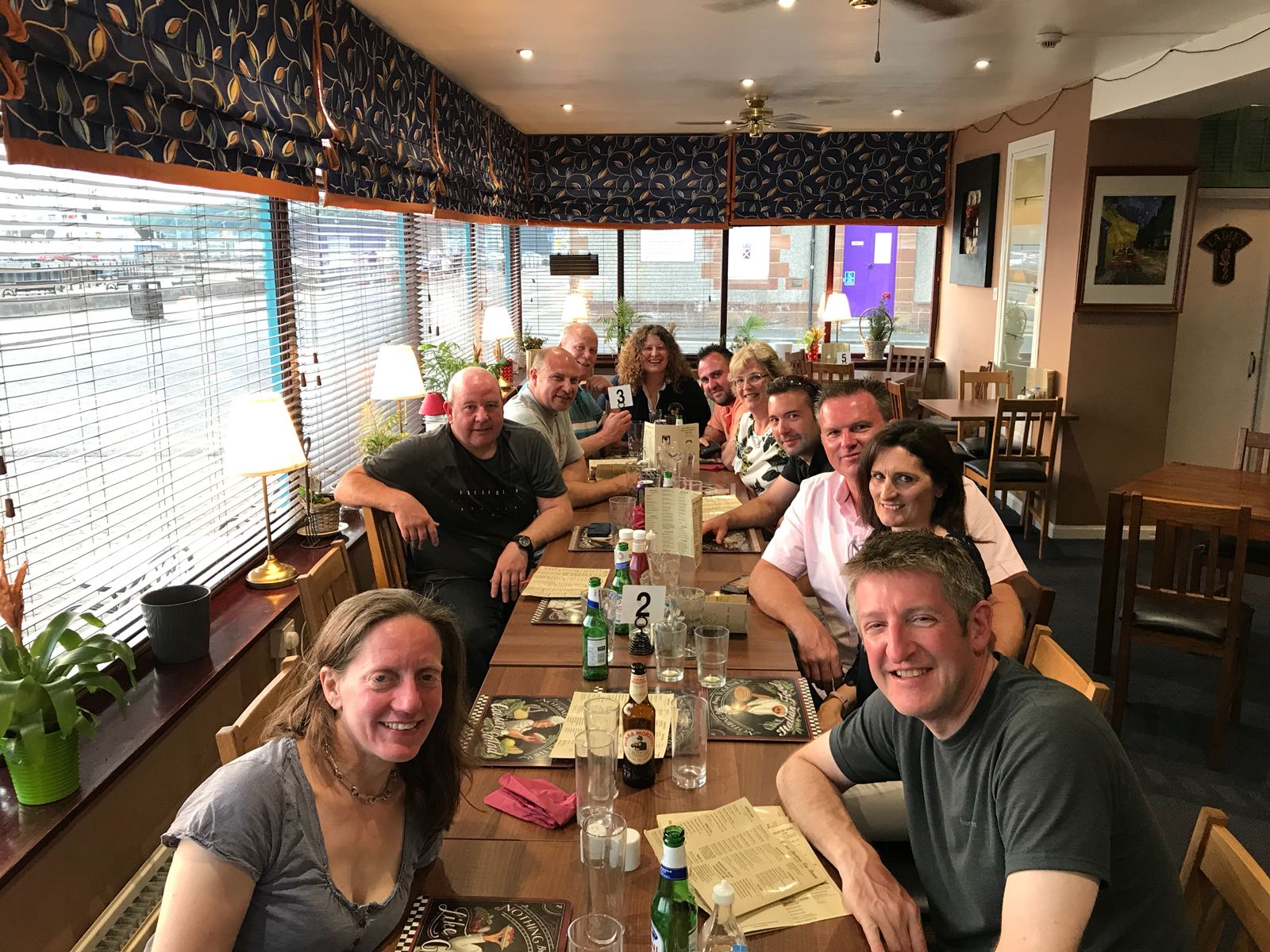 Back in the boat and a quick trip back across more mirror like water we dekitted, desmelled and it was back to the restaurant for more food and of course ale.