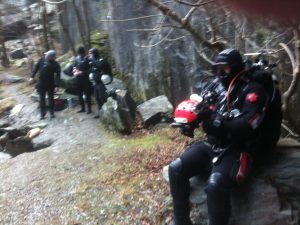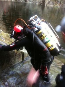 Hodge Close is a challenging site to dive with a long wade through a flooded tunnel, a shimmy down a set of slippery ladders with your kit and then a dive in a cold quarry and into a set of tunnels to three chambers. Between the team we managed to visit all of the chambers and the sump as well. A great day was had by all and we managed to share turkey buns, mince pies and carrot cake.