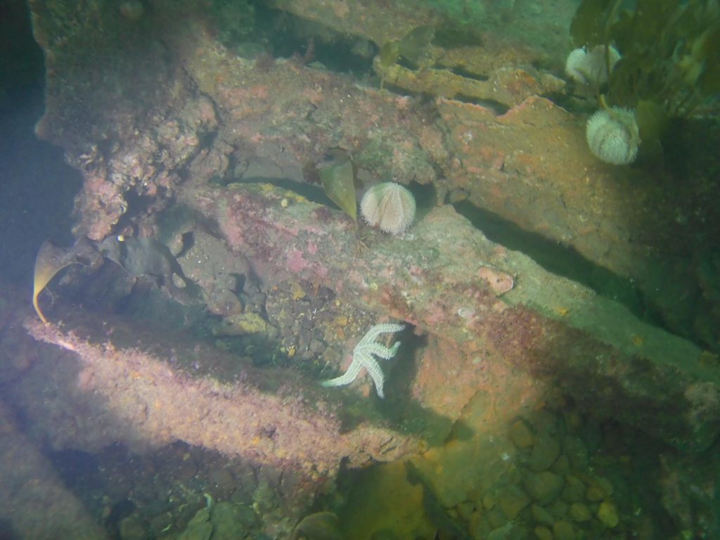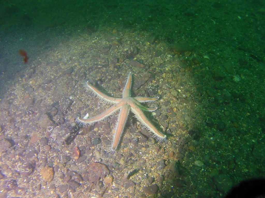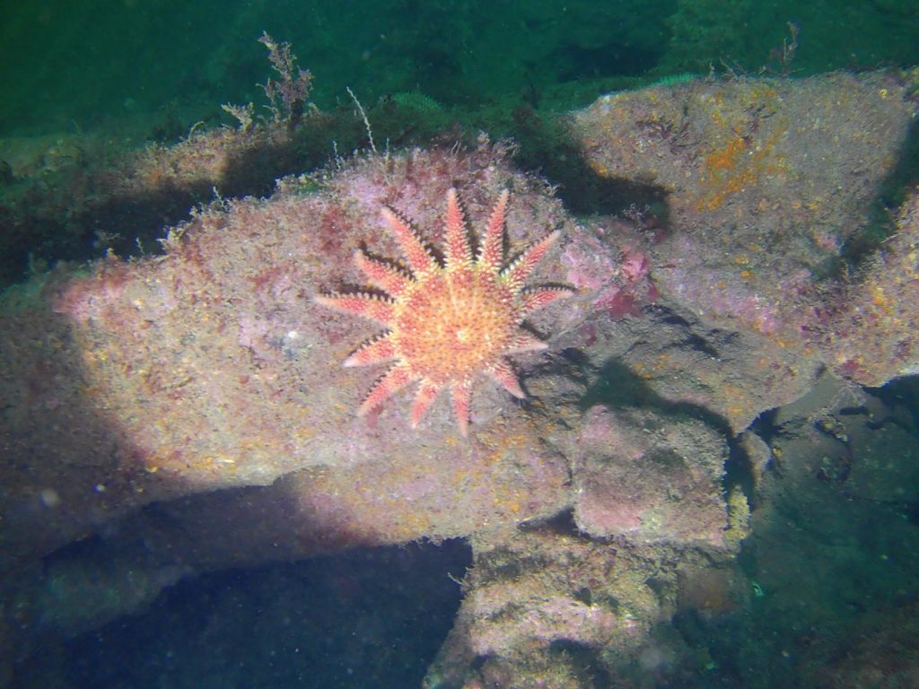First days diving – Friday – gentle dives to settle us in. The Lady Isabella (max depth 15m) an iron barque followed by a scenic dive at the 12ft pinnacle. Both areas involved lots of star fish (pincushion, spine, sunstar and some others) a few fish and dead mans fingers.