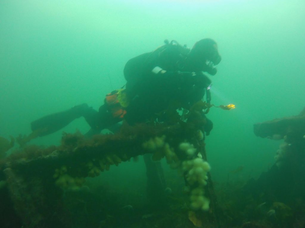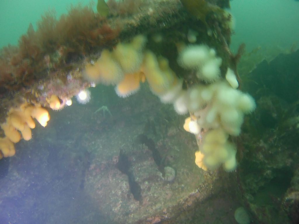 Saturday started earlier with the promise of a deep dive at the SS Beagle on the north west coast of Cumbrae. 35m depth, standing upright it was a ship full of life covered in dead men’s fingers, nudibranch, plumose anenome and a few fish and shrimp.