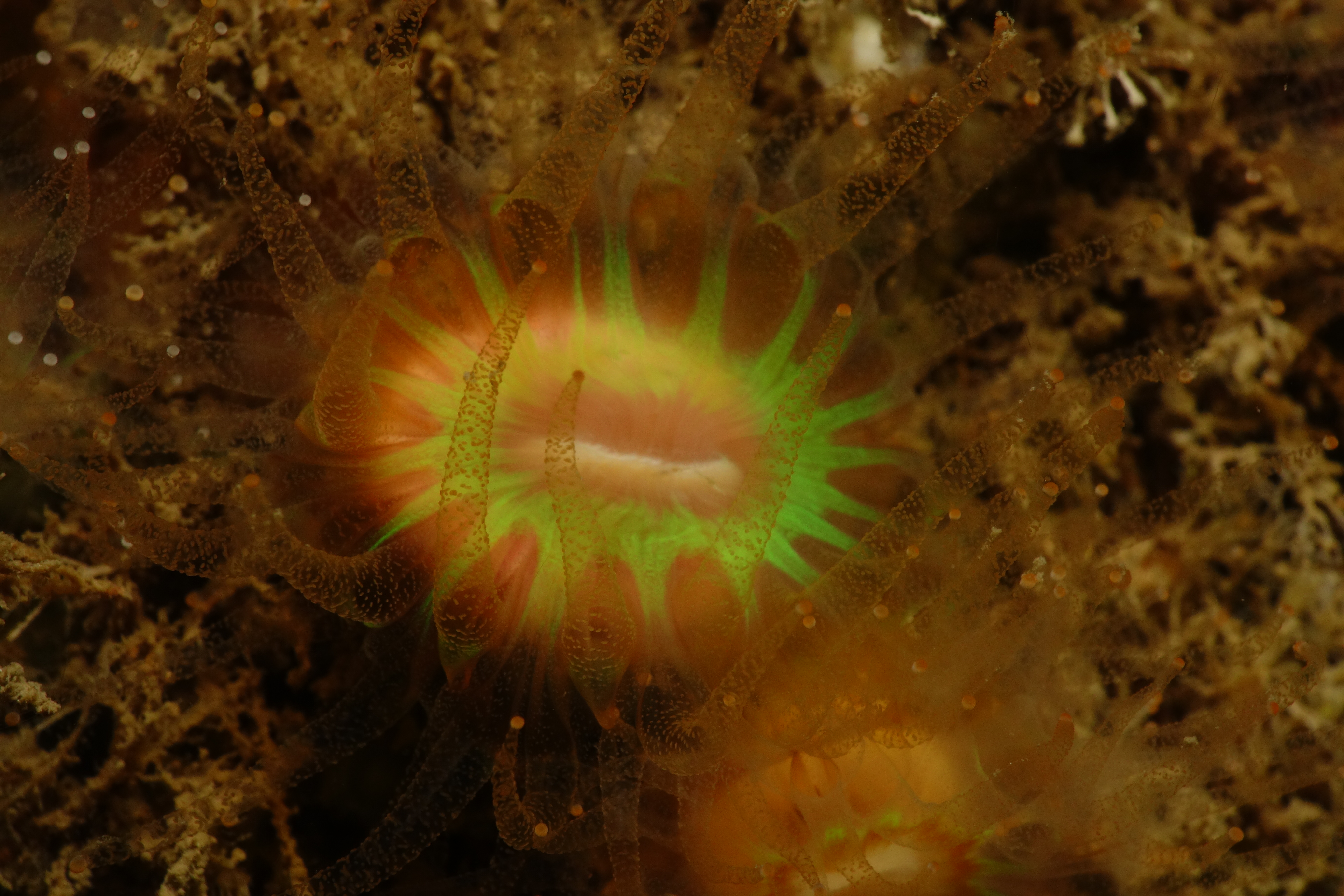 We caught the overnight Liverpool to Belfast ferry on Friday evening, disembarked Saturday at 6.30am, drove to Ballycastle, had breakfast in The Bay Café, kitted up and were ready for our first dive on the North Wall and Arch, on Rathlin Island at 11.30am. The north wall was stunning– a riot of colour, but with serious currents and the bottom at 87m –not a place for anything other than perfect buoyancy. The arch was covered in cluster anemones and sponges. Our second dive was on the rocky reef below Carrick- a -Rede Rope Bridge. Cat shark, angler fish edible crabs, squat lobster and a wide variety of sponges, anemones, hydroids and bryzoa were seen.